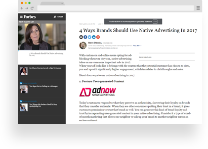 I think first of all ads relevance influenced a lot. AdNow has great targeting opportunities and only relevant ads are displayed on my website. So my audience is not annoyed by such ads, but interested in it. Second thing is that there are a lot of options in the admin panel to customize widgets and make them really look as a part of the content. First month my manager helped me to make ads more attractive and get more clicks. This is very important for those webmasters who work on cpc - ads should not spoil the website interface to keep users loyal without increasing bounce rate. AdNow ads look really native!